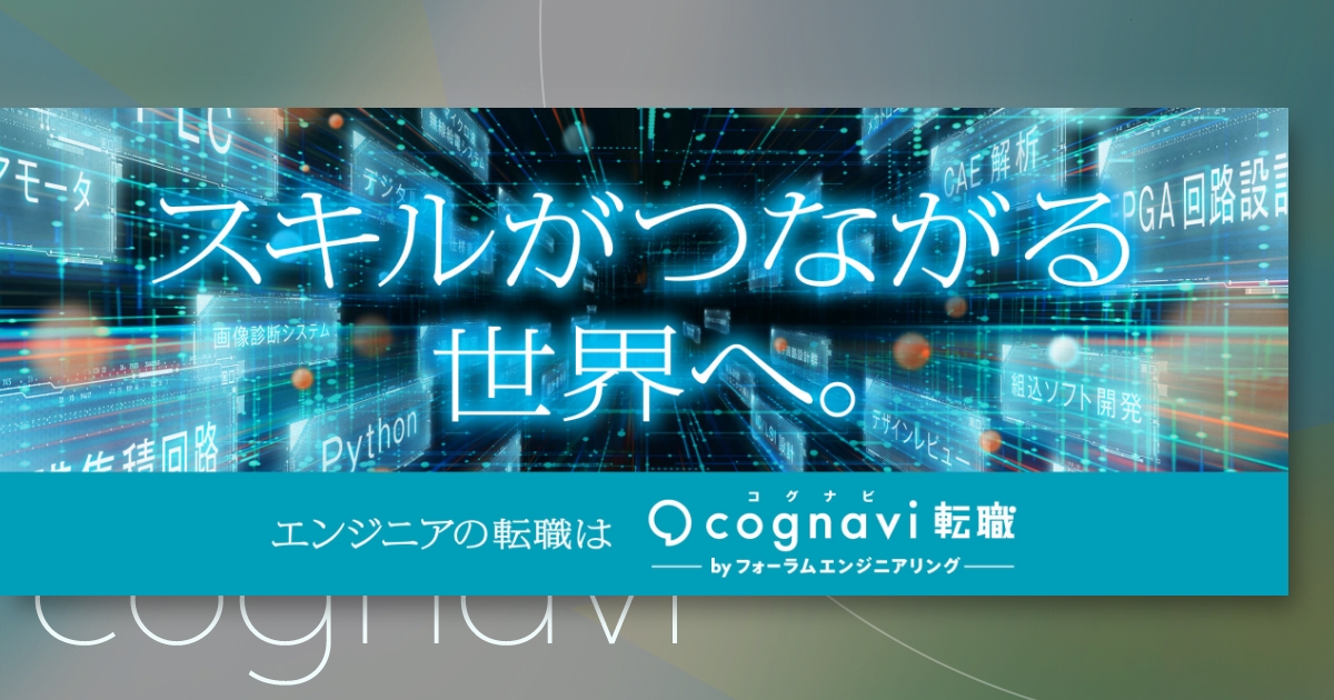 コグナビ転職はフォーラムエンジニアリングが開発した、 エンジニア向けの転職サイトです。掲載している求人は技術職限定で、「製品」や「技術」に特化した企業情報を提供しています。またエンジニアと企業や求人とのマッチングにAIを活用した独自のマッチングシステムを導入しています。最新技術を用い、エンジニアの為に作られた、コグナビ転職ならではの機能を是非ご利用ください。